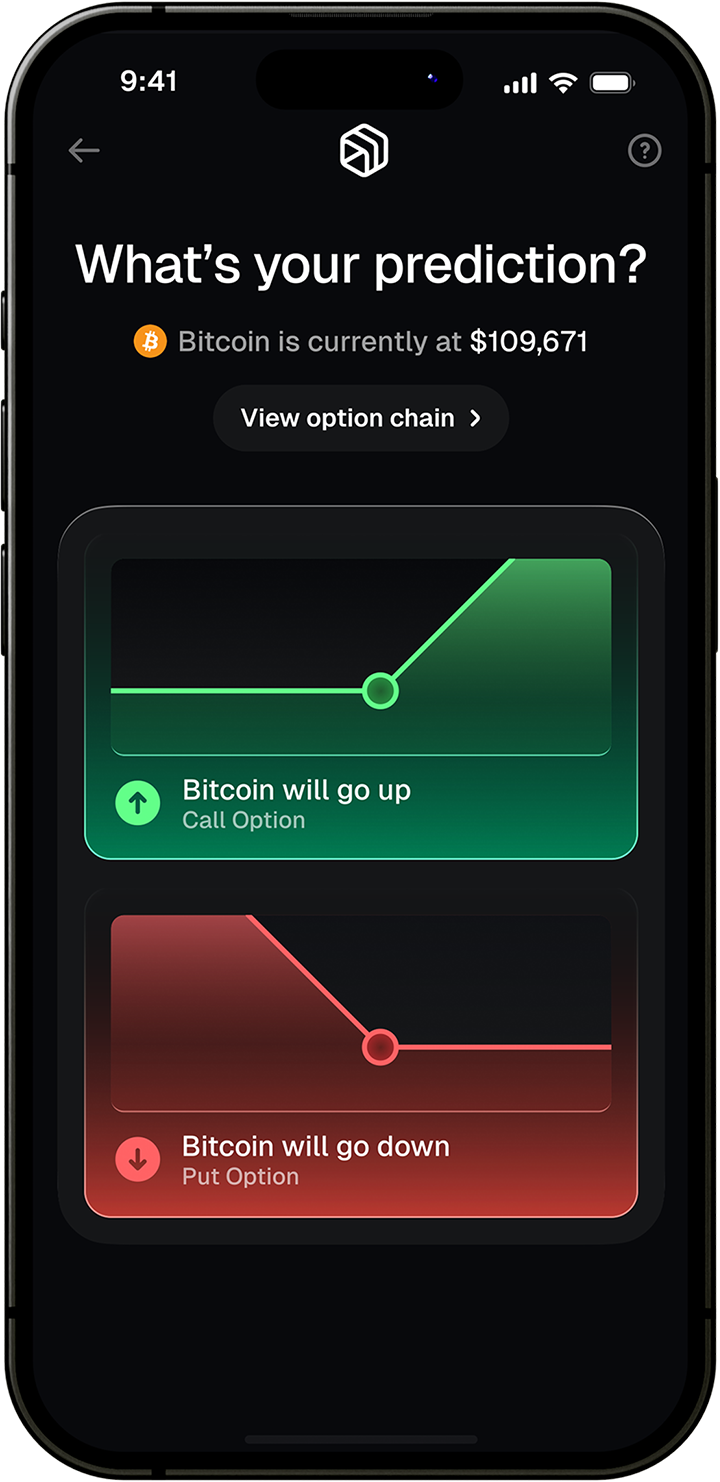 Decide if Bitcoin will rise (Call) or fall (Put).